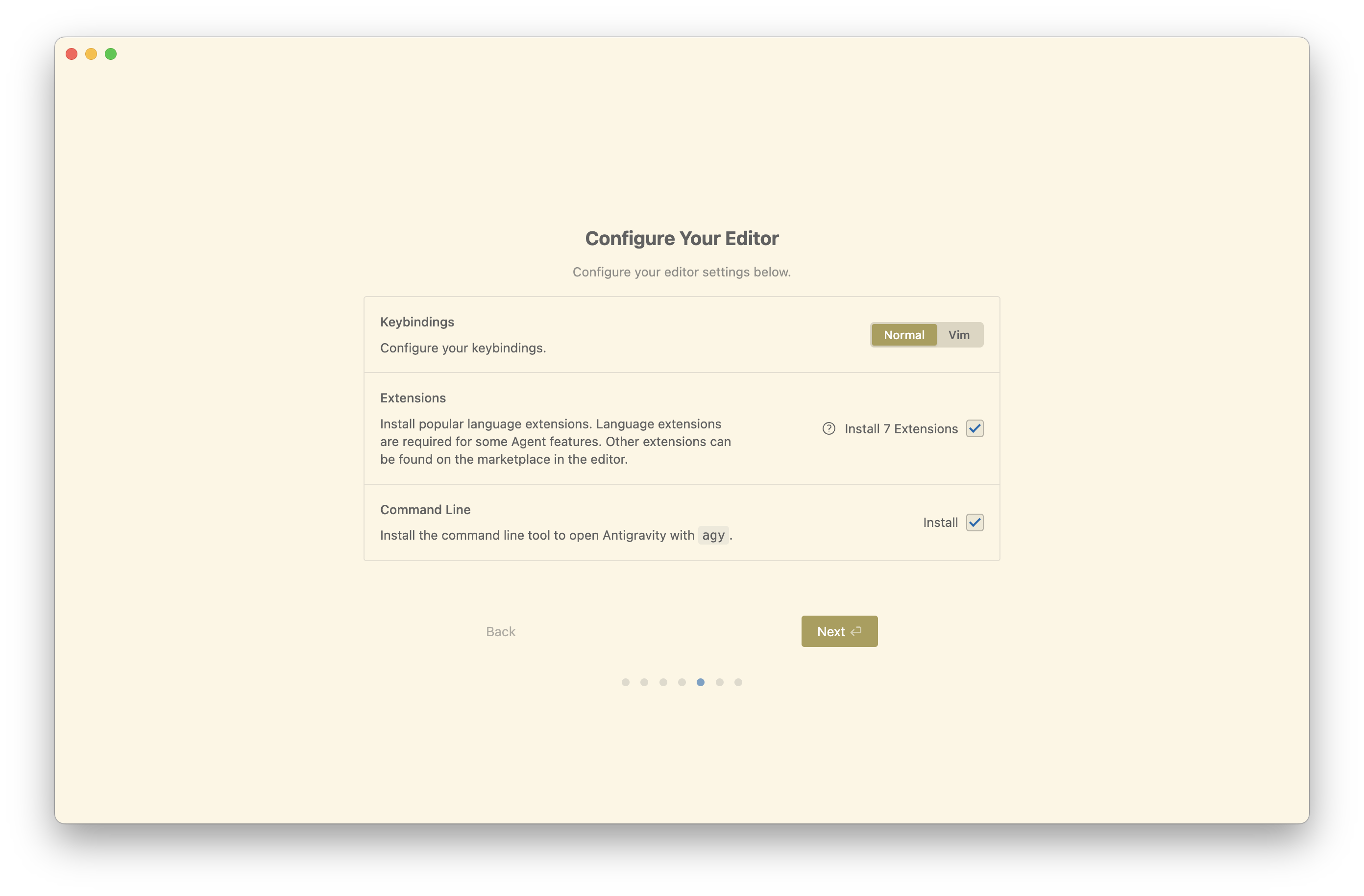Choosing “Start fresh” is often better for a new tool. It prevents legacy settings from conflicting with Antigravity’s unique AI features. You can always customize specific settings later.