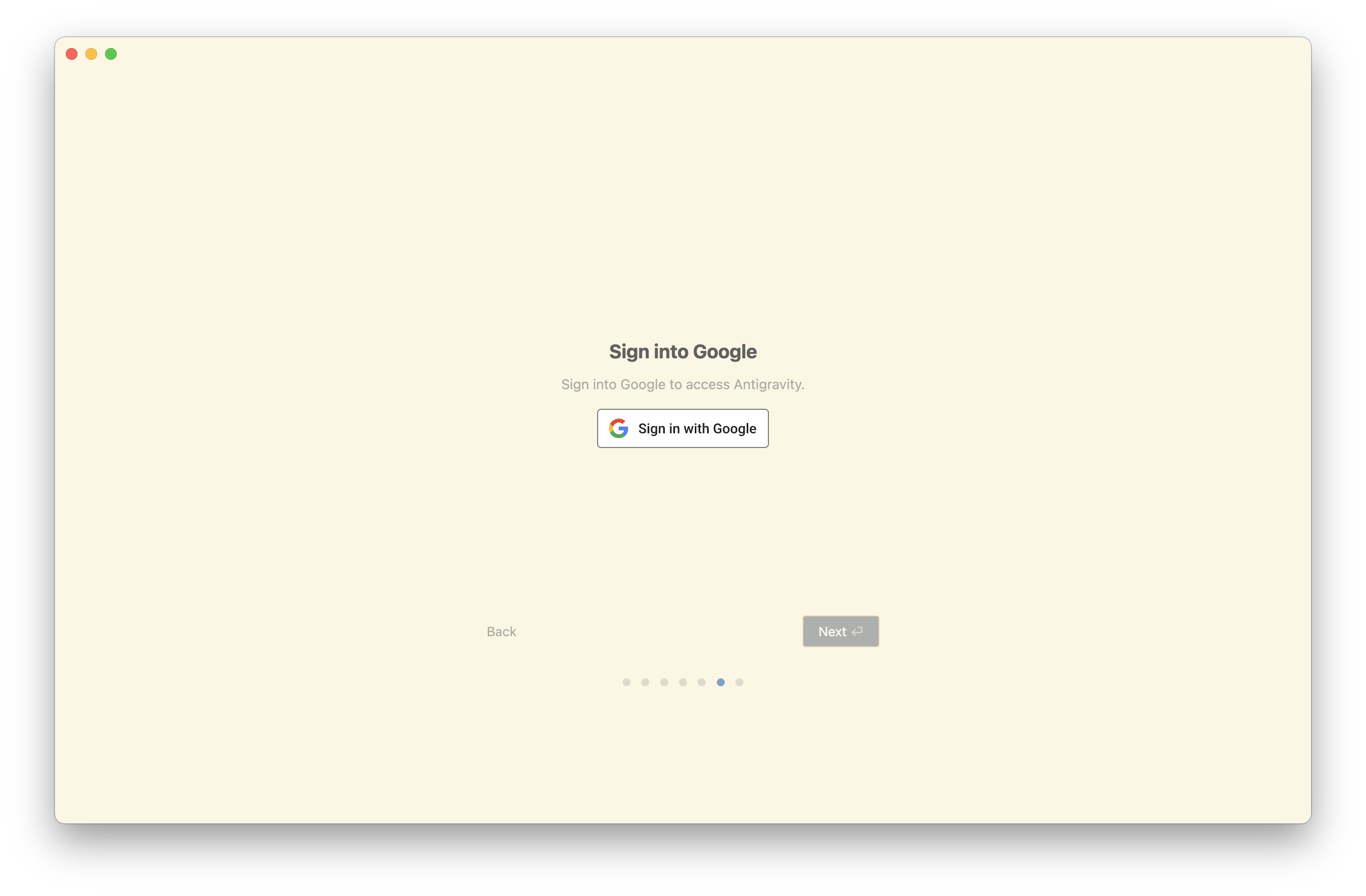 Since Antigravity is a cloud-native, AI-first IDE, it requires your Google account to sync settings and access the underlying LLM models.